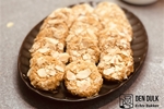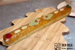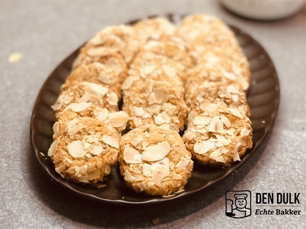 Feestelijk verpakt pakket gevuld met een kleine kerststol een kerststaaf en kerst-koekkransjes